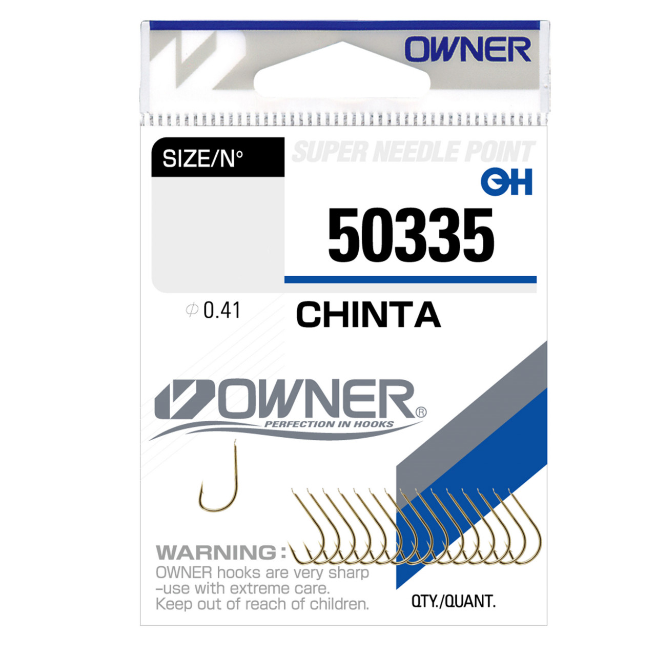 Carligele Owner din gama 50335 CHINTAca orice carlige din aceasta familie (CHINTA) sunt caracterizate ca fiind carlige universale cu larga aplicabilitate. Sunt fabricate din sarma subtire de otel Hi-Carbon - deci sunt elastice, sunt forjate si au varful deosebit de ascutit. Pentru cei interesati, pot fi reconditionate cu un accesoriu de ascutit carlige (eventual diamantat) – nu isi pierd calitatea. Pot fi utilizate in pescuitul cu aproape orice tip de momeala. Dimensiunile mici si medii se preteaza la nade gen viermi, larve, rame, seminte, particule, mamaliga, etc. Dimensiunile mari sunt potrivite pentru pescuitul cu pstisor viu sau broasca la rapitor. Culoarea GOLD (auriu) le face sa fie prferatele pescarilor ce merg in special pe lacuri si balti.