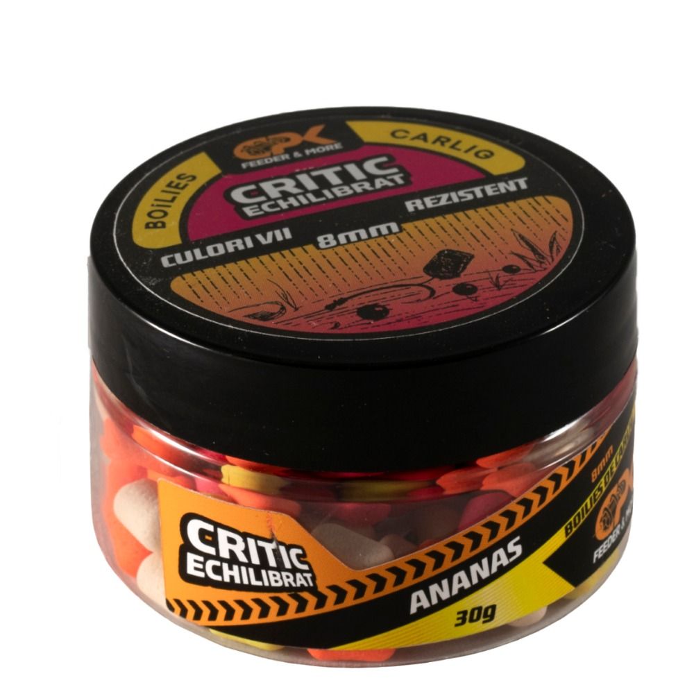 PELETE CPK CRITIC ECHILIBRATE FEEDER ANANAS 8 MM 25 g sunt boiliesuri create pe un mix complex care ofera un grad ridicat de flotabilitate chiar si pe perioade de timp indelungate. In compozitia boiliesurilor Wafters / Critic echilibrate CPK intra atractanti care si-au dovedit eficienta de-a lungul timpului in capturarea crapilor iar impactul vizual este unul puternic prin gama de culori pe care o punem la dispozitie.