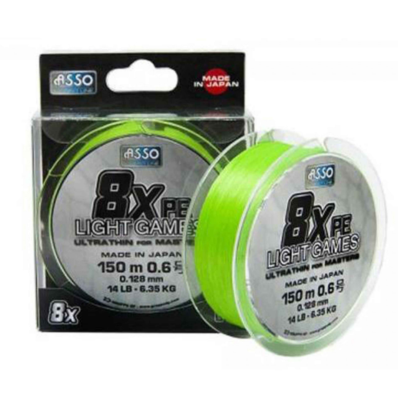 Firul ASSO Light Games PE 8x Fluo Chartreuse este un varf de gama fabricat in Japonia. Este produs din PE 100% high modulus. Este un multifilament autentic made in Japan atat din punct de vedere al diametrului cat si al tolerantei. ASSO Light Games PE 8x Fluo Chartreuse este subtire, neted si cu un grad de rigiditate optim care sa-l faca placut pescuitului. Alunecarea prin inelele lansetei se face fara zgomot, adica nu zbarnaie. Are unul dintre cele mai bune raporturi calitate-pret din clasa sa. De la biban si pana la somn acopera intreaga gama a pescuitului la rapitor.