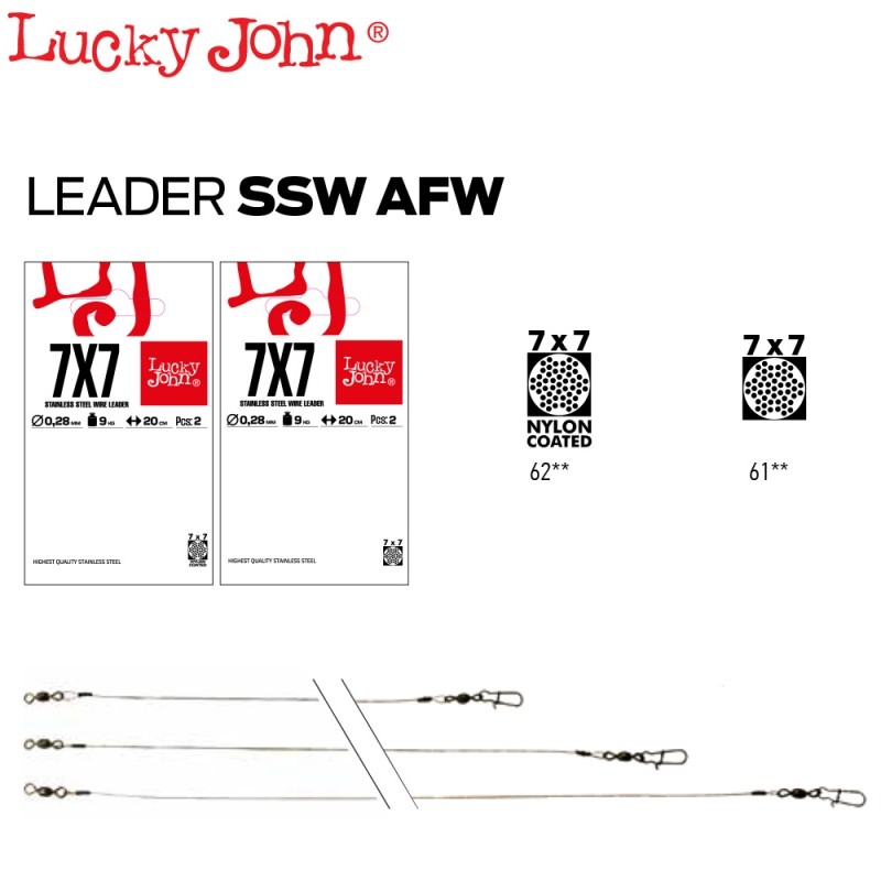 Avantajul oferit de strunele Lucky John este ca rapitorii, si mai ales stiuca, nu le pot taia cu dintii. Chiar si pe parcursul unui dril lung putem fi siguri ca nu vom pierde pestele din carlig. La capatul superior struna este prevazuta cu un vartej, in care putem lega firul principal, iar in capatul inferior avem o agrafa, ce asigura un schimb rapid al nalucii.