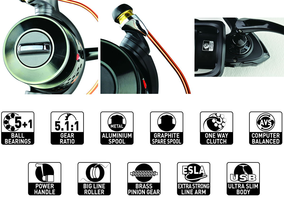 Mulineta cu 5 rulmenti si tambur din aluminiu.