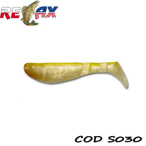 Materialul foarte moale si forma sa fac din acest shad cea mai folosita naluca fabricata de Relax . Se fabrica in culori standard (S) in culori simple sau combinate, avand o culoare de fond obtinuta din turnare si alte nuante obtinute prin vopsire cu sau fara glitter. Datorita crestaturilor de la baza cozii naluca evolueaza la cele mai mici vibratii ale varfului lansetei, evolutia sa se apropie de miscarea pestilor vizati de rapitori. Lungimea de 6,2 CM, recomanda aceasta naluca pentru pescuitul salaului, bibanului ,iar stiuca si somnul o gasesc atractiva.