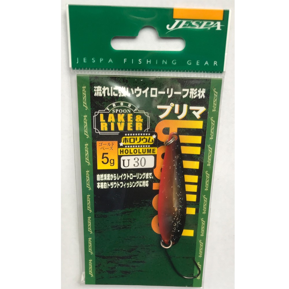 "PRIMA" is a willow leaf type spoon and features a sophisticated slender body shape. It moves as if it was dancing in the stream. It makes a quick fall to the targeted range and provides proper rolling and wobbling action and also has turning action just after casting. That is the evidence of its excellent design proven in the field.